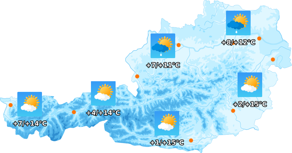 Das Tiefdruckgebiet LOTHAR bleibt vorerst wetterbestimmend. Am Dienstag überwiegen im Norden und Osten Österreichs dichte Wolken und es regnet vor allem am Vormittag verbreitet, auf den Bergen fällt Schnee. Im Westen und Süden bleibt es trocken und tagsüber kommt die Sonne durch, im Laufe des Nachmittags beginnt es dann überall aufzulockern. Die Tageshöchsttemperaturen bewegen sich zwischen +8 und +15 Grad.